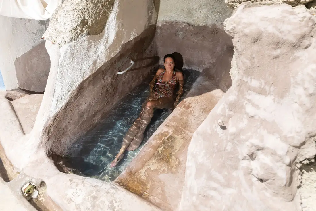 Gorący piasek parzy stopy, para unosi się nad turkusem. Gwiazdy odbijają się w bąbelkach – magiczne miejsce na nocną kąpiel w wulkanicznym eliksirze młodości.